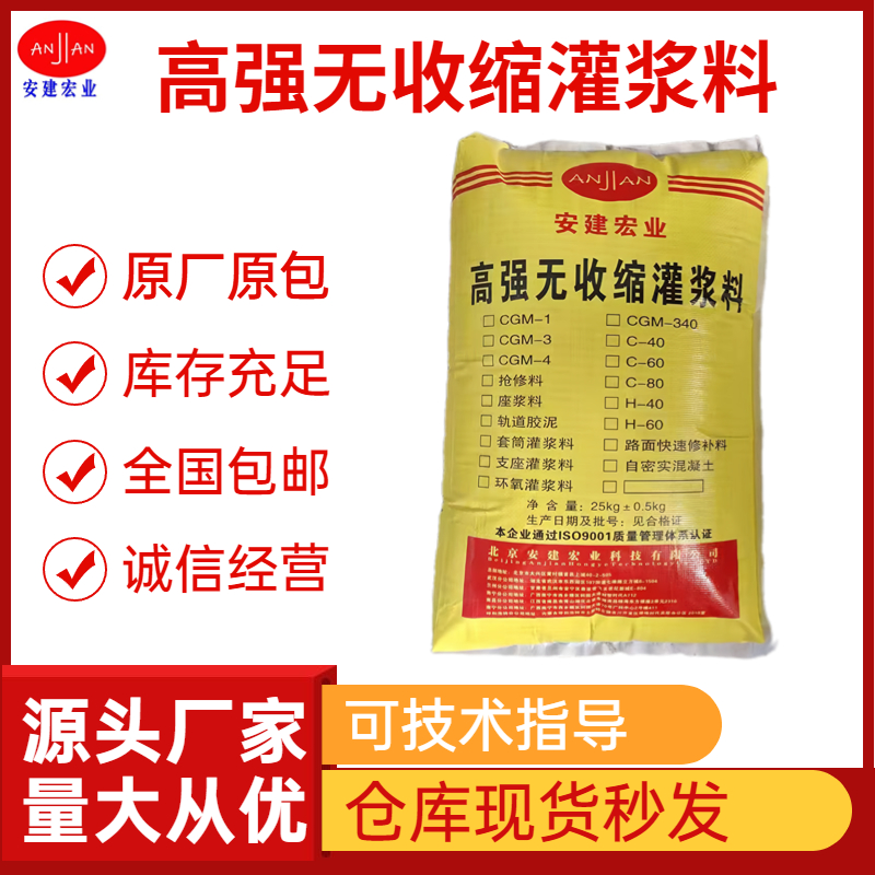 安建宏业牌的C80C100灌浆料耐老化耐高温无垫铁安装机械基础各地均有分厂产品:估价:618.00,规格:灌浆料,产品系列编号:灌浆料 发布日期:2025-4-3